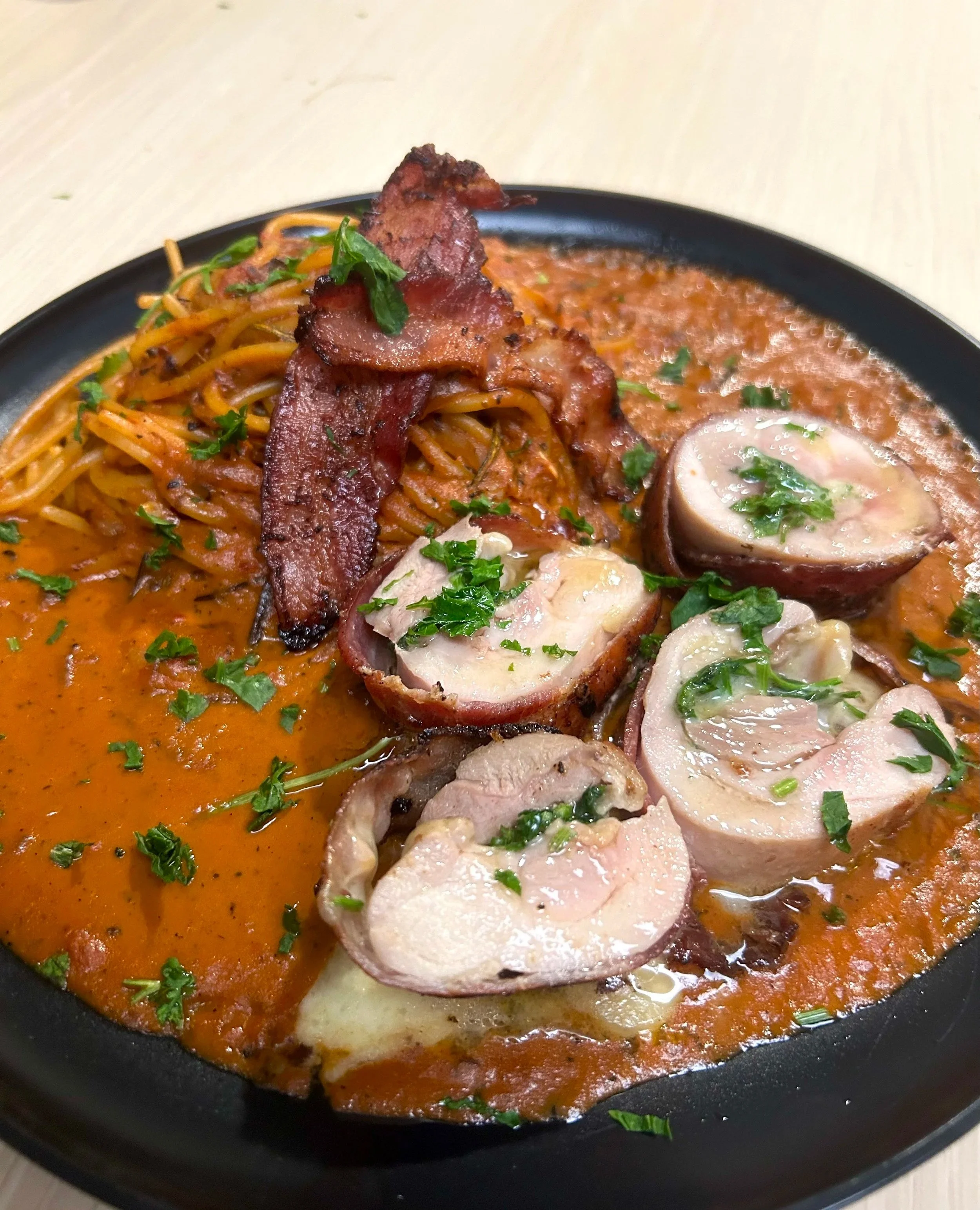 Stuffed Chicken Thigh w/ Spicy Tomato Pasta